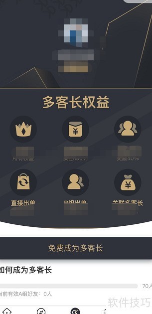 2、 点击会员后进入相应页面,此处为成为多客长的首步,页面包含多客长介绍,点击中央成为多客长按钮即可跳转至下一页。