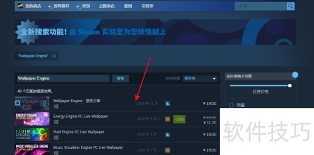 2、 在商店页面中查找并进入Wallpaper Engine。