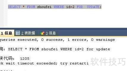 13、 abc_2用户尝试为id=2的数据添加行锁未果,因超时导致失败,此时abc_1用户仍未释放锁。