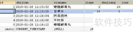 4、 向收费表中插入一条记录,包含以下信息:编号为2,时间为2019年1月28日11时15分59秒,项目名称为甘草片,单价15元,数量2盒,总金额30元。该操作将上述数据写入系统数据库的收费明细中,用于记录此次药品收费情况,确保财务数据准确完整,便于后续查询与统计分析,是日常收费管理中的常规操作之一。