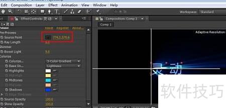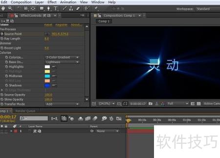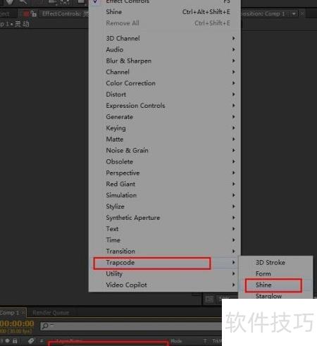 3、 选中新建的灵动层,应用特效中的Trapcode Shine。