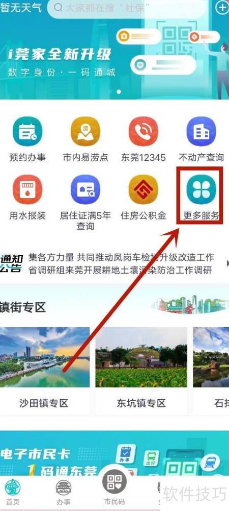 1、 打开手机上的i莞家应用,进入更多服务选项。