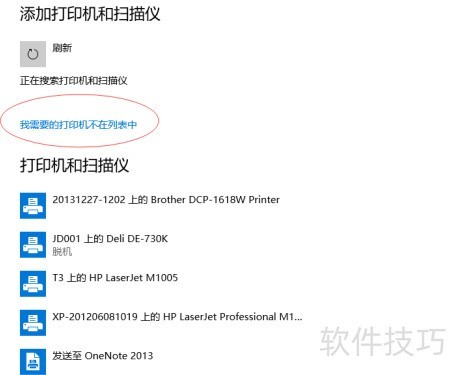 2、 若搜索结果显示打印机可安装,则无需其他操作;若无法安装,请点击未找到所需打印机,选择手动安装,随后连续点击下一步完成设置。