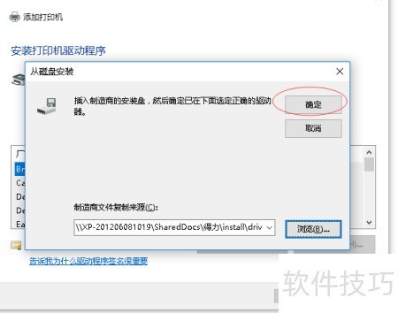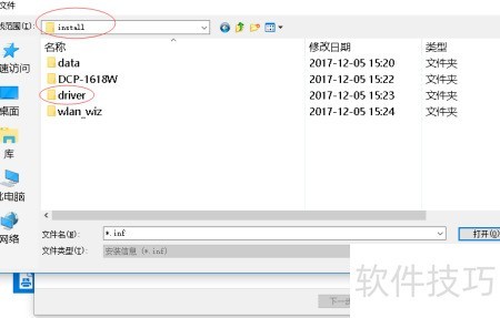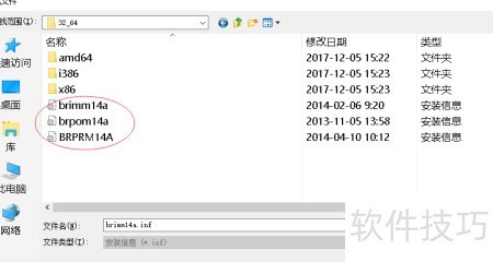 3、 找到驱动程序,根据提示在磁盘中进行安装,点击浏览,定位到解压后的驱动文件夹中的install目录,依次选择driver、gdi、32位与64位版本,随后选中BRPRM14A型号,确认无误后点击打开并确定完成安装。