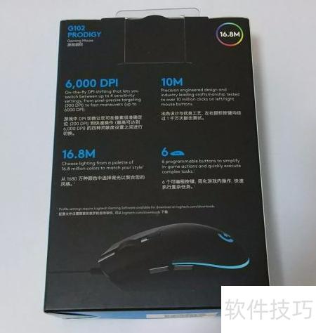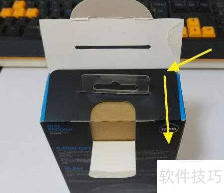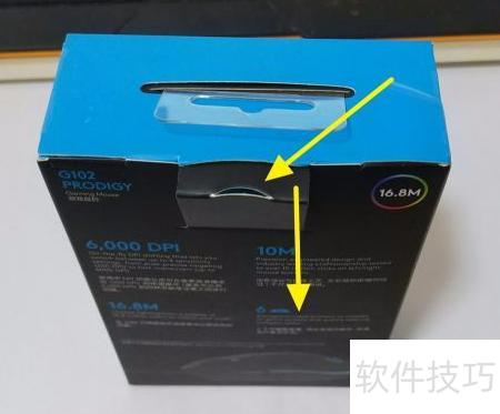 7、 包装盒背面设有月牙形拉扣,轻轻捏住并缓慢向外拉开即可开启。切勿用力过猛,以免损坏包装或内部鼠标设备。