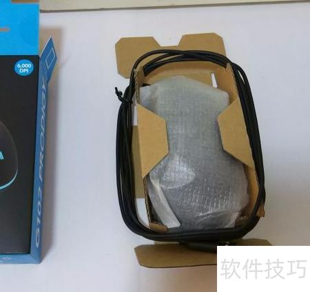 13、 打开黑色封口后,可见鼠标被一层牛皮纸覆盖,沿缝隙撕开牛皮纸,即可露出鼠标本体。