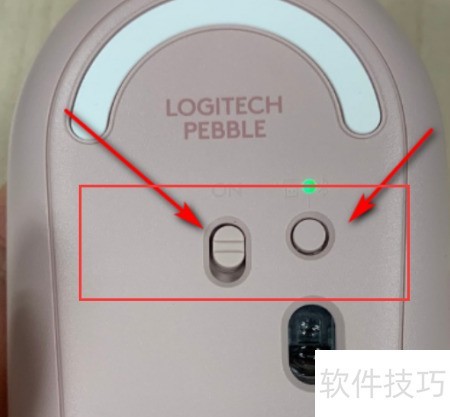 2、 打开无线鼠标电源,按下蓝牙标识按钮进行连接。