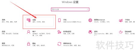 4、 按下电脑Windows键,打开主菜单,选择设置,进入后点击设备选项即可。