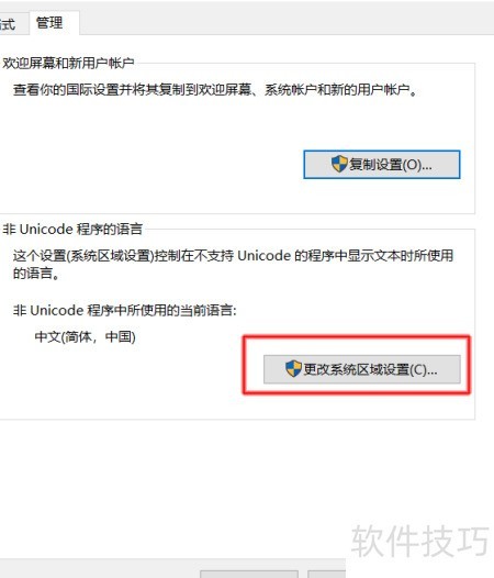 6、 进入管理,选择更改系统区域设置