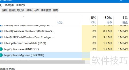 9、 重启电脑,或先结束LogiOptionsMgr.exe进程,再重新启动罗技Options软件即可解决问题。