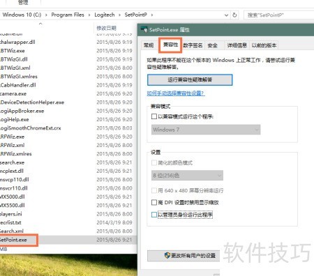 4、 右键点击Setpoint.exe,进入属性中的兼容性设置进行操作。