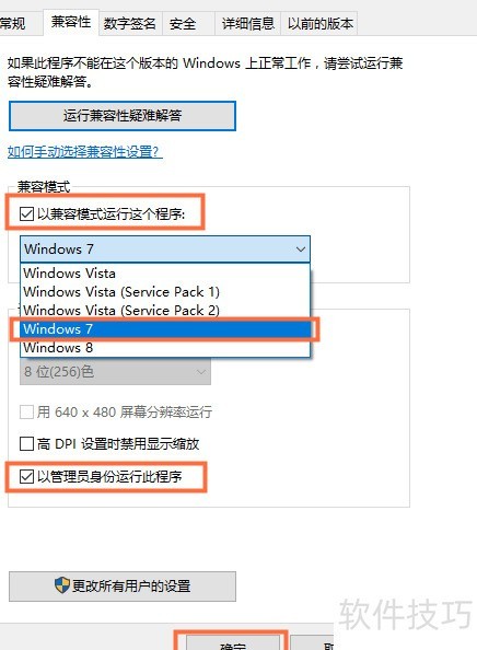 6、 勾选设置中的以管理员身份运行此程序选项。