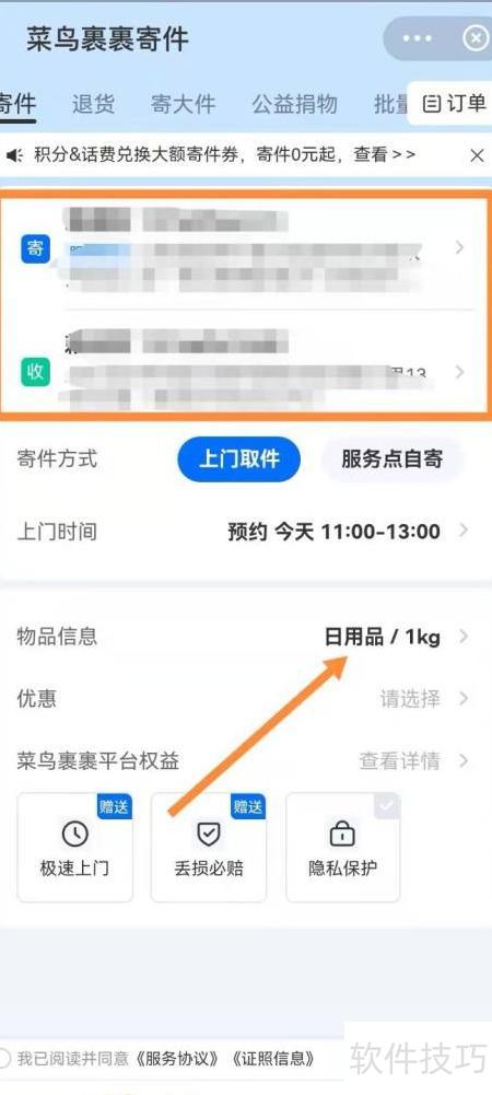 5、 填写地址后,进入物品信息页面。