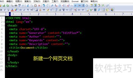 1、 启动EditPlus,创建新的网页文件。