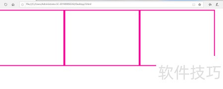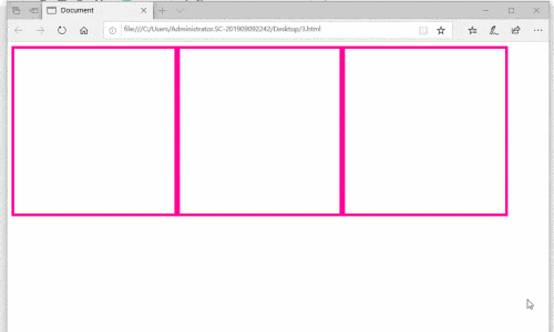 3、 第三步:编写样式,确保在电脑浏览时,三个div标签水平排列在同一行。