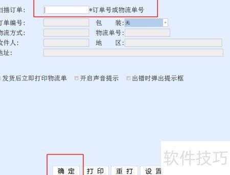 4、 输入订单或快递单号,点击确认即可完成出库操作。