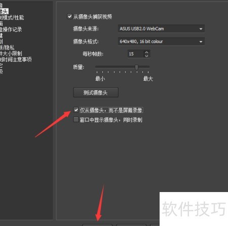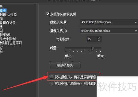5、 勾选摄像头选项,确保仅使用摄像头录制,不进行屏幕录像。