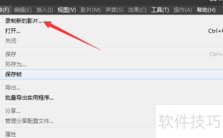 1、 启动BB FlashBack后,进入主界面,选择菜单栏中的文件,然后点击录像下的新建影片选项开始录制。