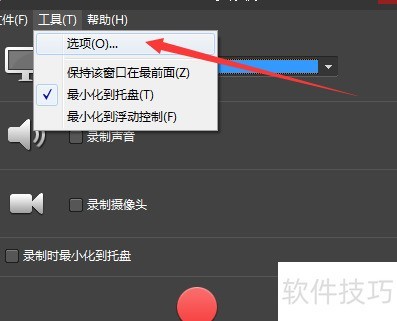 2、 在弹出的录像机界面里,选择工具菜单中的相应选项。