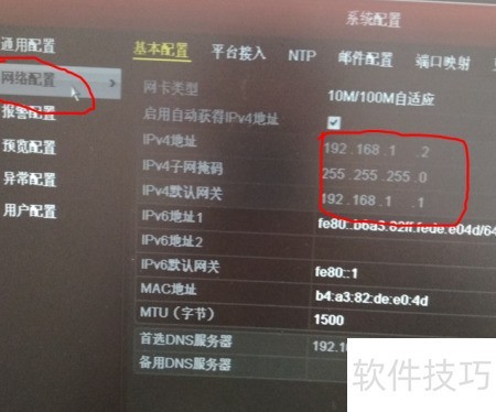 3、 在系统配置的基本设置中查看IPv4地址、子网掩码和网关是否为空。若摄像头直接连接交换机而非路由器,需手动设置IP地址;若摄像头接入路由器网络,则可选择自动获取IP地址。因路由器具备自动分配IP的功能,而交换机不具备此功能,故连接方式不同,IP设置方式也应相应调整。