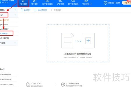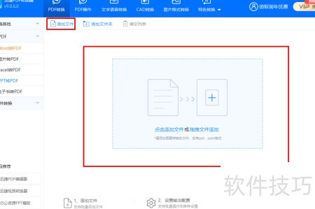 2、 点击添加文件按钮或直接将PPT文件拖入蓝色虚线区域即可上传。