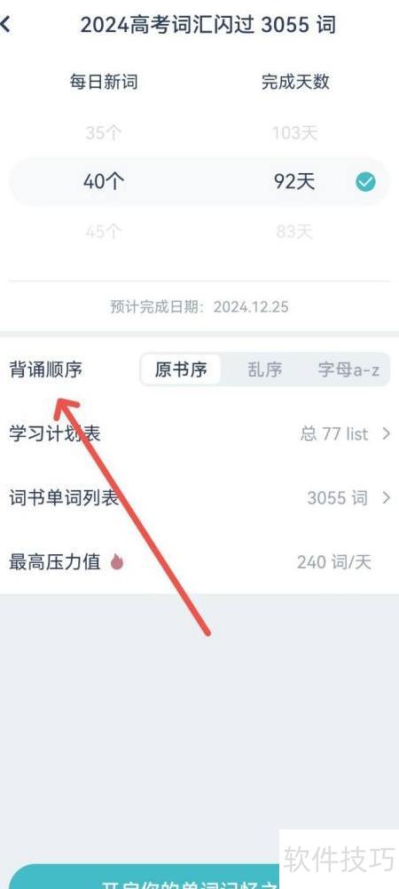 2、 进入词书背诵设置,查找背诵顺序选项