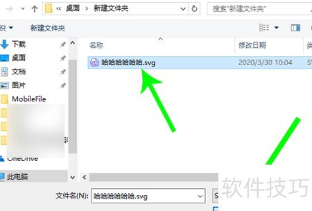 6、 进入存放SVG格式文字的文件夹,选中目标文件后点击打开即可完成操作。