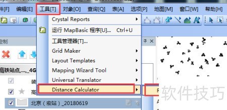 3、 加载完毕后,进入工具菜单,选取距离计算器并执行运行操作。