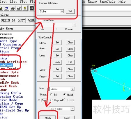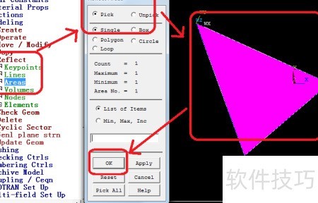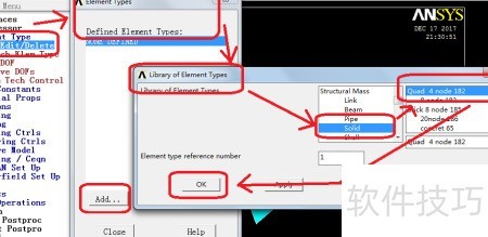 4、 根据图示步骤设置plane182单元类型,为后续网格划分做好准备。