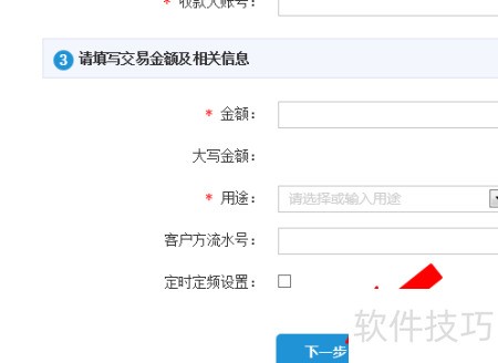 4、 输入企业账号、金额及用途,点击下一步完成操作。