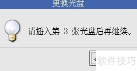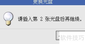 21、 当提示更换光盘时,取出当前光盘,放入标有2的光盘,等待10至15秒后,点击确定即可继续操作。