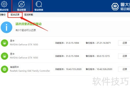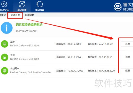 4、 点击按钮,可恢复电脑硬件驱动程序。
