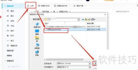 1、 选择目标文件夹或新建一个,进入后点击上传或上传文件按钮,即可导入所需打开的文件。