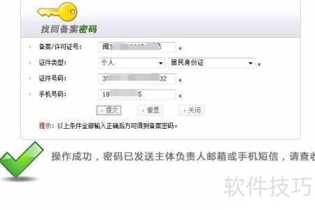 5、 提交后,若网站信息无误,系统将自动把密码发送至网站负责人登记的邮箱或手机。