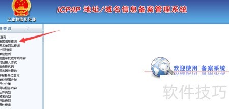 2、 进入系统后,点击左侧功能列表中的备案信息查询选项。