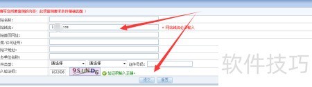 6、 可通过域名进行查询,选择第二项,输入不带www的域名,填写验证码后提交即可。