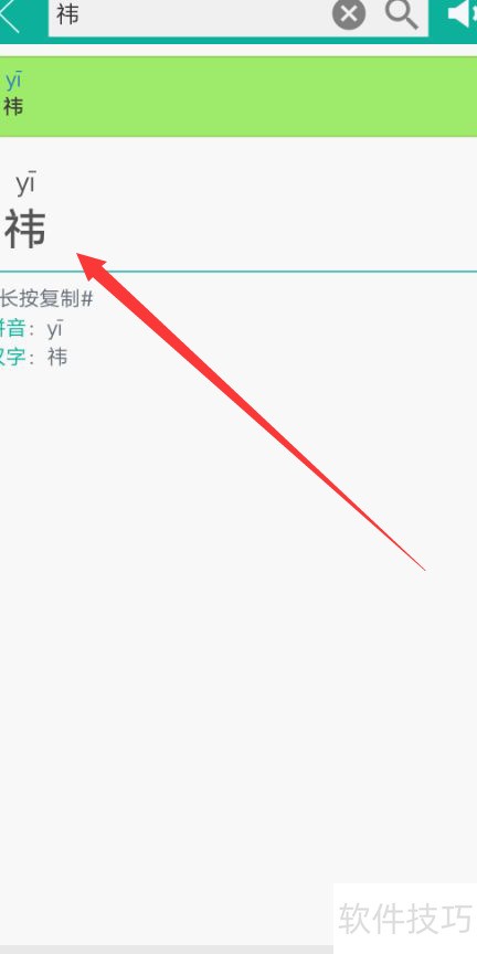 5、 第五步,选中祎字即可查看其汉语拼音。