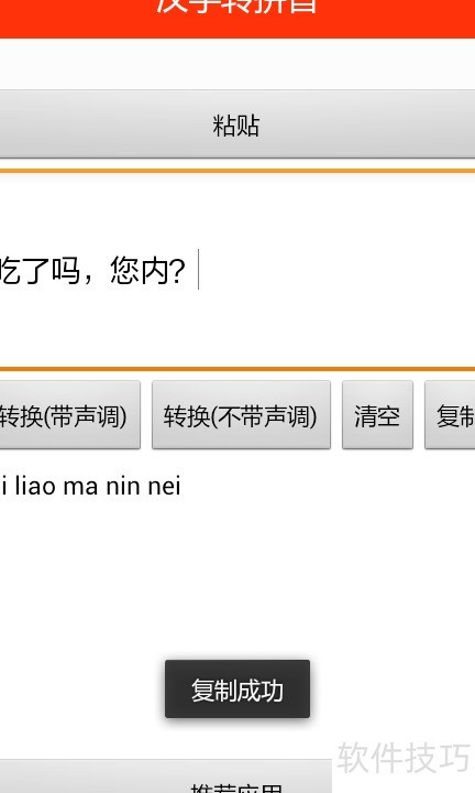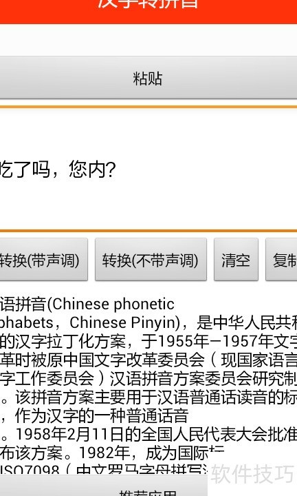 10、 遇到生僻字时,可复制后在应用中粘贴,即可自动转换为拼音。