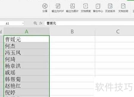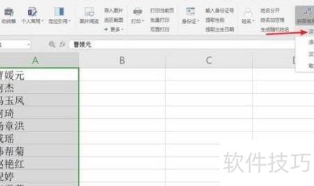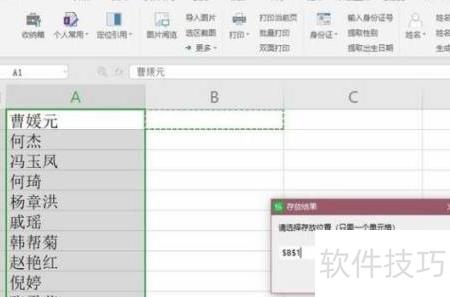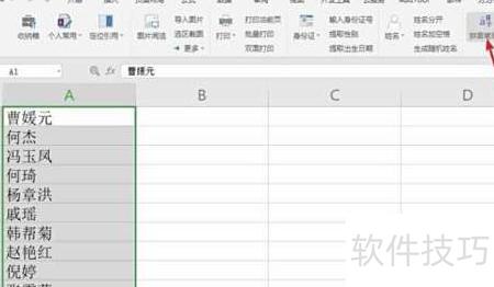 1、 选中姓名区域后,点击右上角工具箱图标。