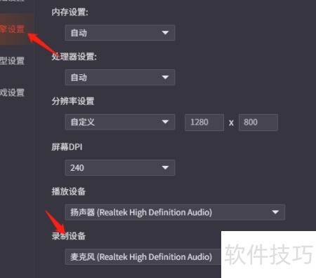 3、 进入设置,选择引擎设置,点击录制设备进行配置。