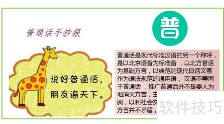 5、 在图框右下角添加文字,详细说明普通话手抄报的内容与意义。
