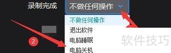 3、 在弹出窗口中选择录制完成,随后根据提示设置后续操作,例如选择电脑关机以执行相应指令。