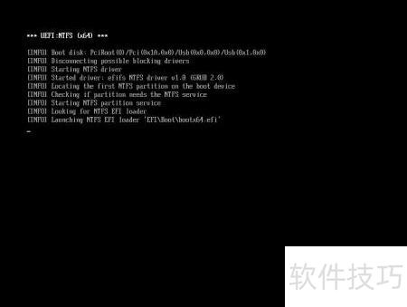 4、 正常引导后,屏幕将显示NTFS EFI加载界面,可能会出现按任意键继续……的提示,此时需按下键盘上的任意按键,以启动Windows安装程序。