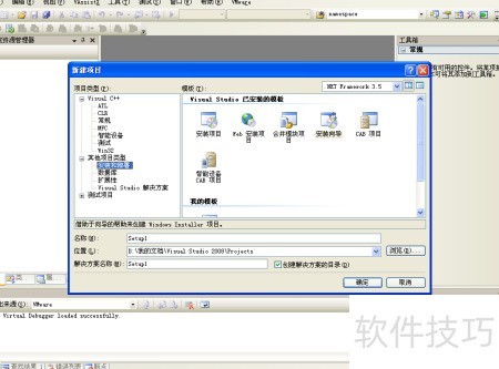 1、 打开VC2008,选择新建项目,进入其他项目类型,点击安装向导,创建一个空白的安装文档,最后确认操作。