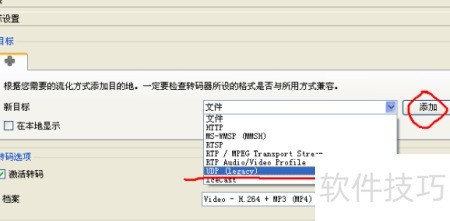 3、 点击下一个,在目标设置中选择RTSP,再点击添加按钮即可完成操作。