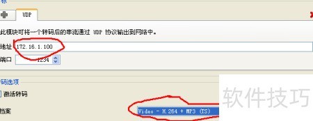 4、 输入目标IP地址,在转码选项中根据需求选择合适的编码类型,该IP地址即为本机PC的IP地址。