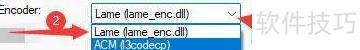 5、 接着点击Encoder:选择按钮,在弹出的列表中选取所需编码器,例如选择Lame(lame_enc.dll)即可完成设置。