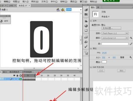 6、 点击编辑多帧按钮,拖动时间轴上的句柄以覆盖全部帧,操作详情见示意图。