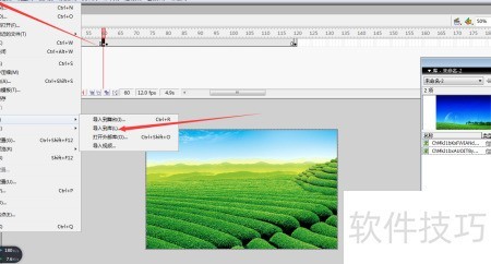 4、 若图片与舞台未对齐,请按Ctrl+L,在文档属性中调整内容。