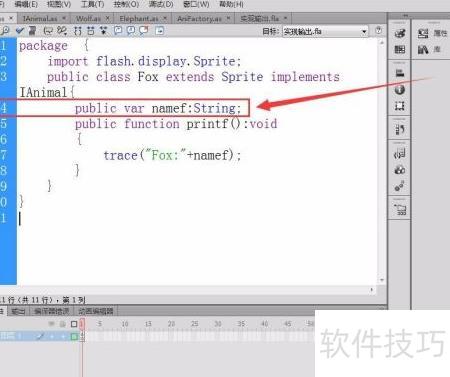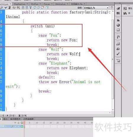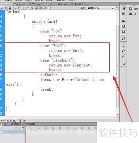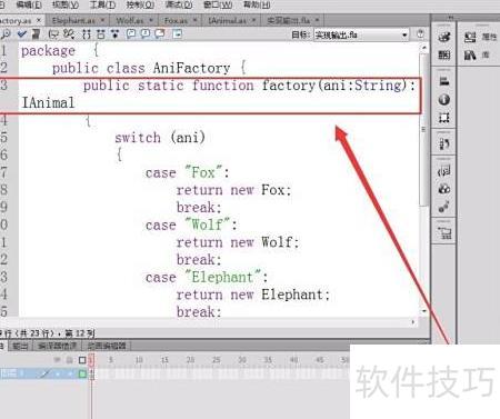 16、 创建一个Flash文档,通过调用简单工厂模式代码,即可显示对应动物的名称。